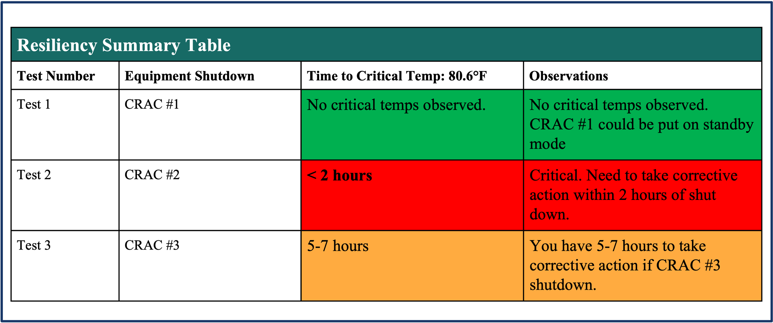This structure ensures that potential failure scenarios are tested without risking system uptime, helping data center operators make informed decisions about cooling infrastructure.