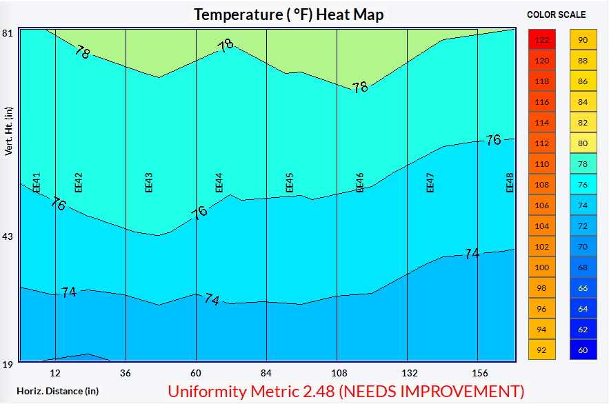 We recommend using the static maps to track the variations across your aisle environment. The more variations, the more likely there is a cooling issue to address. We created the Uniformity Metric as a way to benchmark your efficiency.