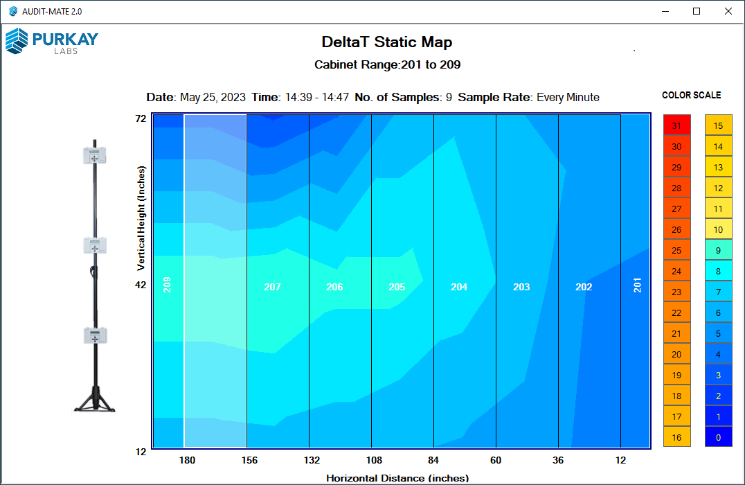 Use the AUDIT-BUDDY’sQuickScan mode to take 1 minute scans across multiple locations. Then, use the AUDIT-MATE software to auto-generate the static heat map.